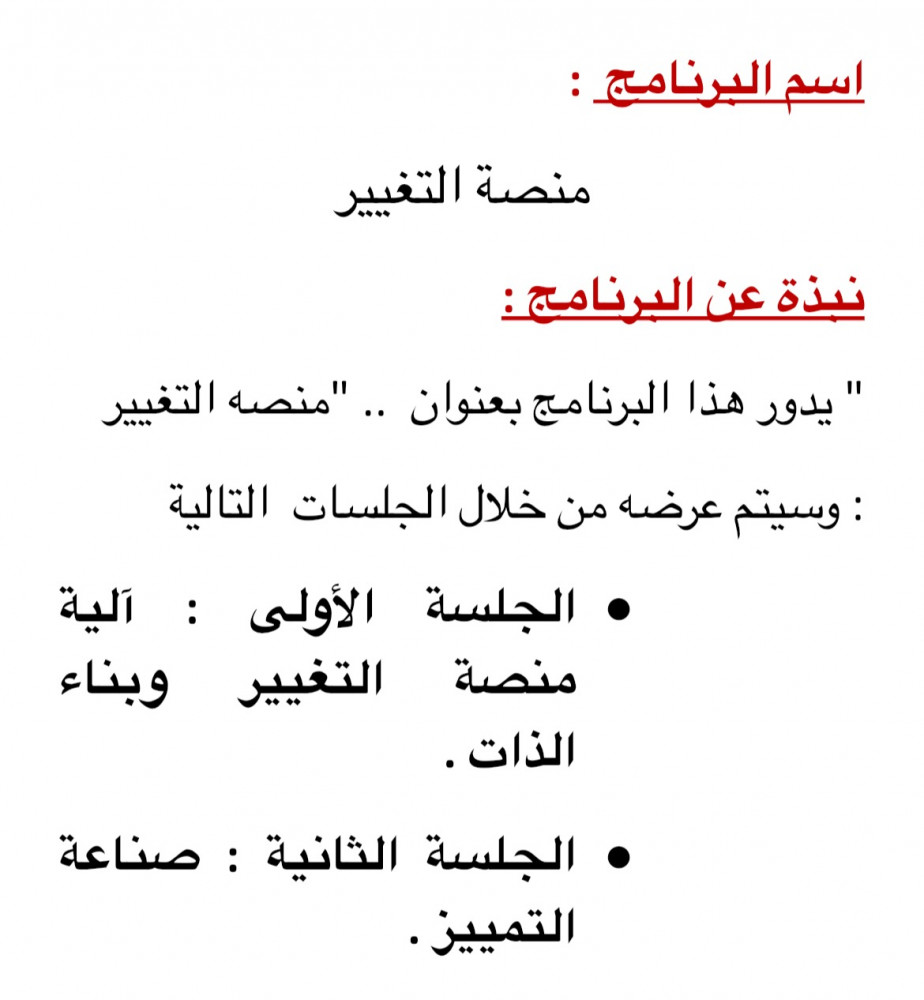 حقيبة تدريبية عن منصة التغيير