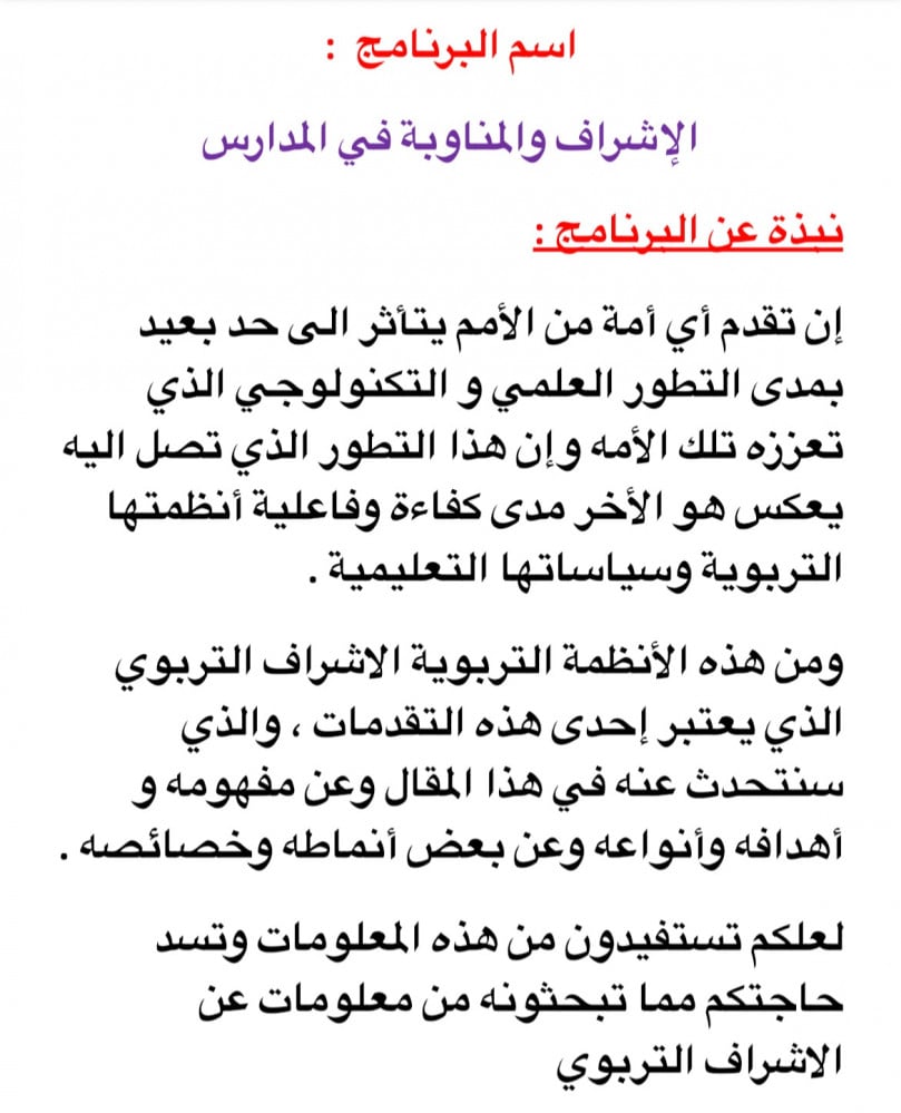 حقيبة تدريبية في الاشراف والمناوبة بالمدارس