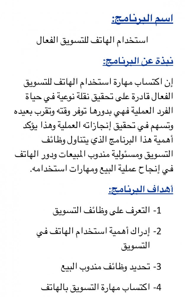 حقيبة تدريبية عن استخدام الهاتف في التسويق الفعال