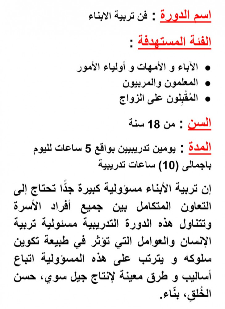 حقيبة تدريبية عن فن تربية الابناء
