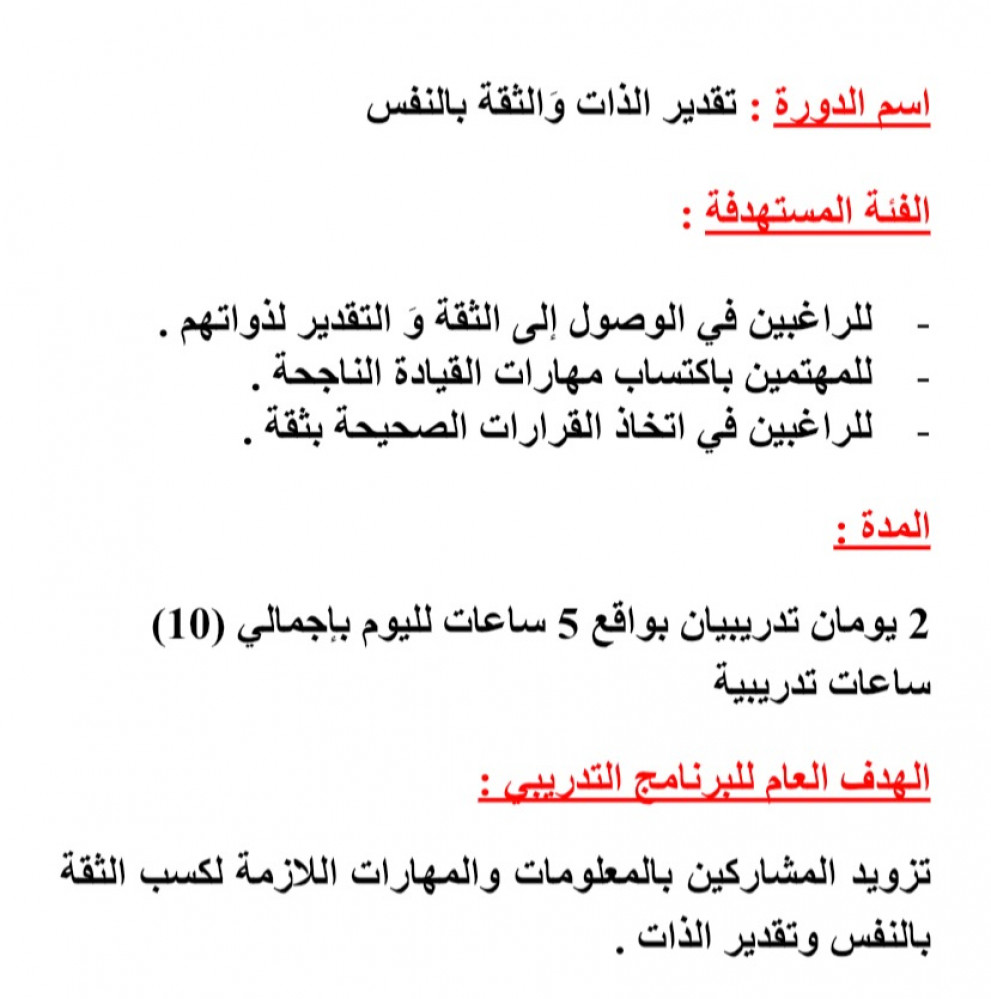 حقيبة تدريبية في تقدير الذات والثقة بالنفس